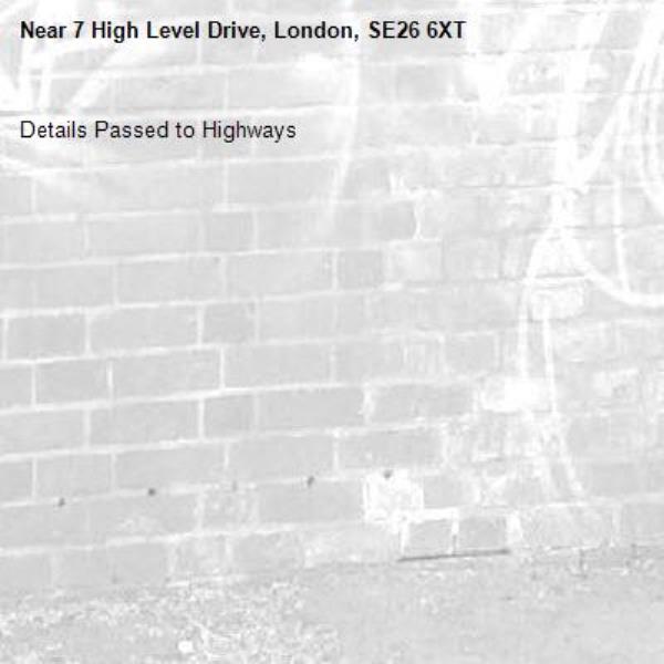 Details Passed to Highways-7 High Level Drive, London, SE26 6XT 26/02/2026 09:56 Details Passed to Highways