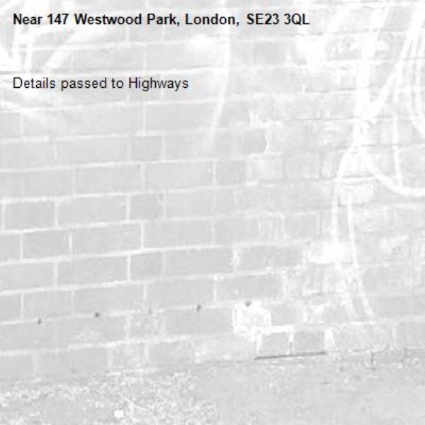 Details passed to Highways-147 Westwood Park, London, SE23 3QL 06/10/2025 16:51 Details passed to Highways